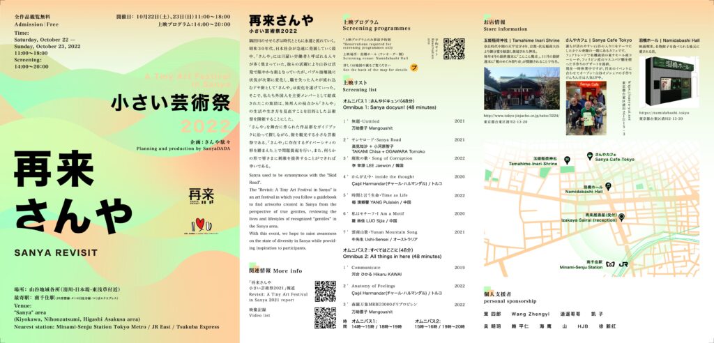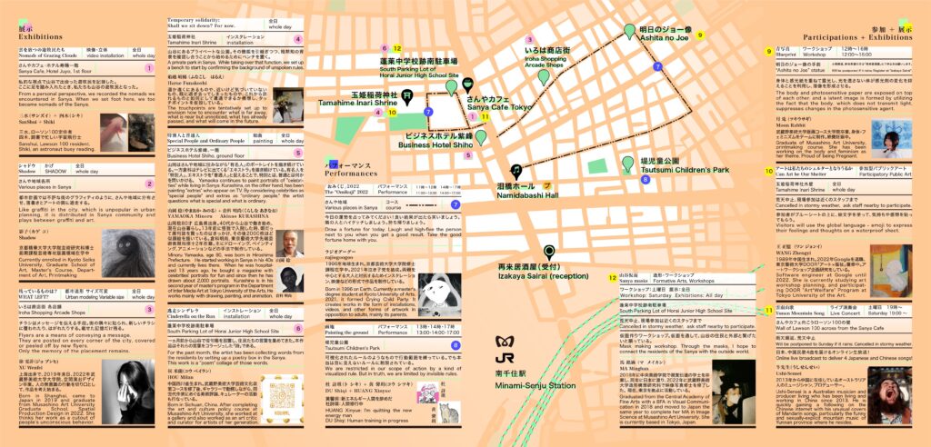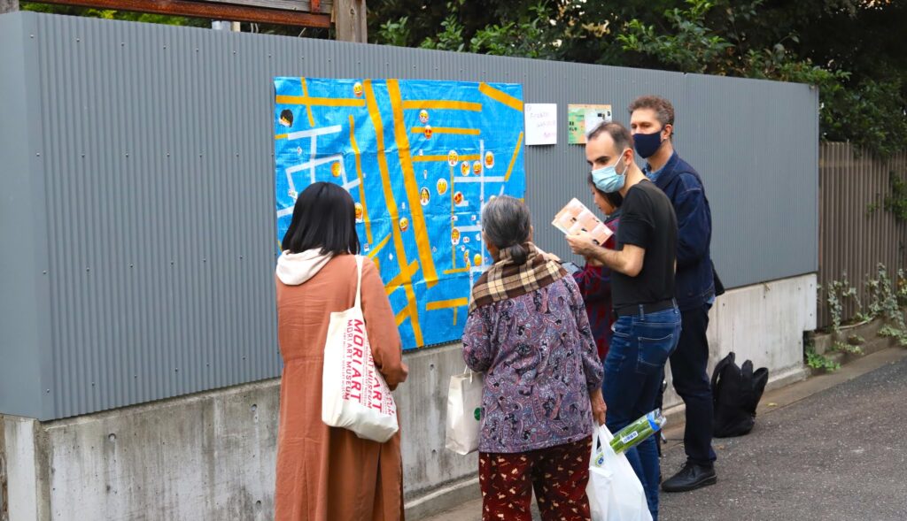 こうして、異邦人であるアーティスト(私)、通行人、そして地元住民が共に描き出した山谷の街道は、言語の壁を越えた顔文字を通じて、人と地域、人と人との関わりが変化していくプロセス全体を表現しています。残された表情を観察すると、狂喜や怒りの顔を置くのは往々にして新参者であり、一方で、どうしようもなさ、疲労、あるいは満ち足りた表情を置くのは、実際にここを生活の拠点としている人たちでした。