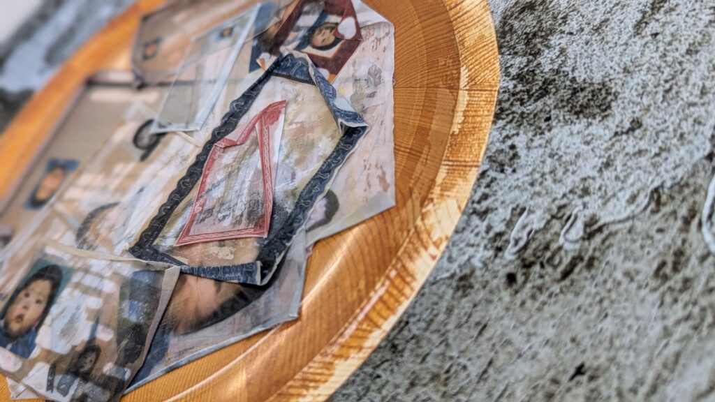 I replaced all my adult certificates and ID photos with pictures of myself as a baby. I erased the text on those documents, which represented the identities and records I acquired from studying, working, and living in China, the United States, and Japan. Then, I placed them in a wooden bucket and washed them, like the way I was bathing as a child.