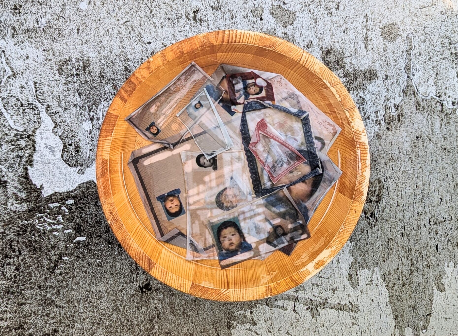 I replaced all my adult certificates and ID photos with pictures of myself as a baby. I erased the text on those documents, which represented the identities and records I acquired from studying, working, and living in China, the United States, and Japan. Then, I placed them in a wooden bucket and washed them, like the way I was bathing as a child.